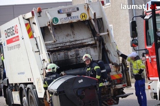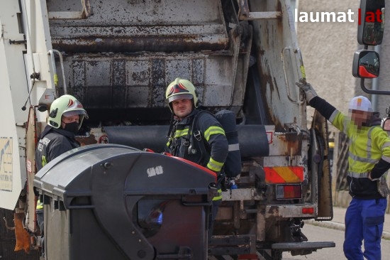 Brand von Abfall in einem Entsorgungsfahrzeug in Wels-Neustadt