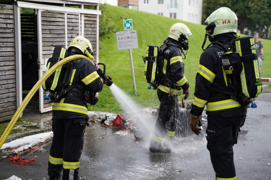 Brand von Abfallcontainern in einer Müllinsel in Leonding sorgte für Einsatz der Feuerwehr