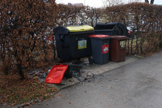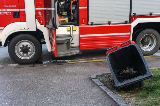Brand zweier Altpapiertonnen binnen weniger Minuten in Wels-Lichtenegg