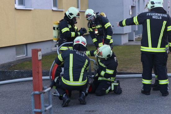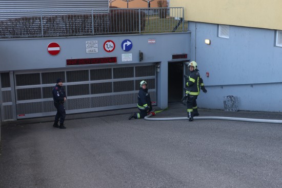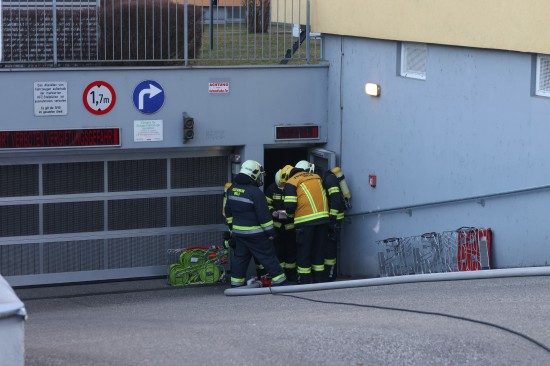 Wels. Ein Brand in der Tiefgarage unter einer Wohnanlage in Wels-Neustadt beschäftigte Mittwochnachmittag die Einsatzkräfte von Feuerwehr und Polizei.