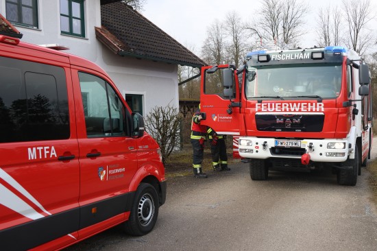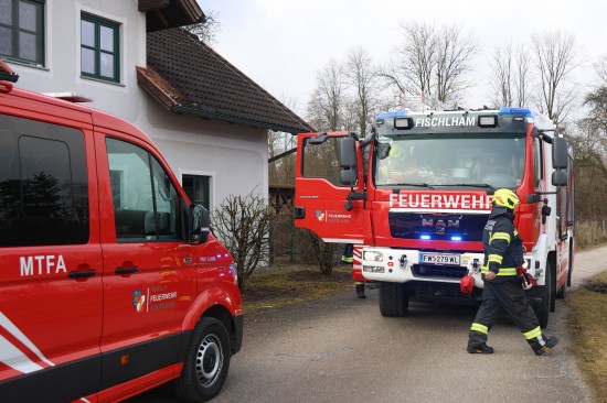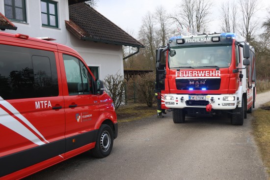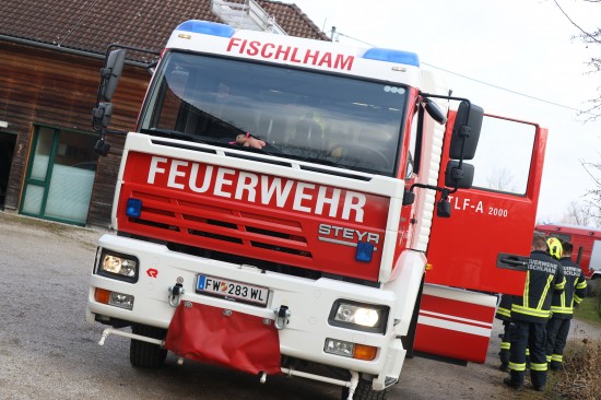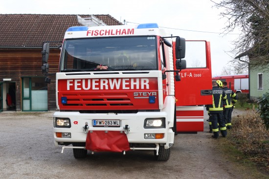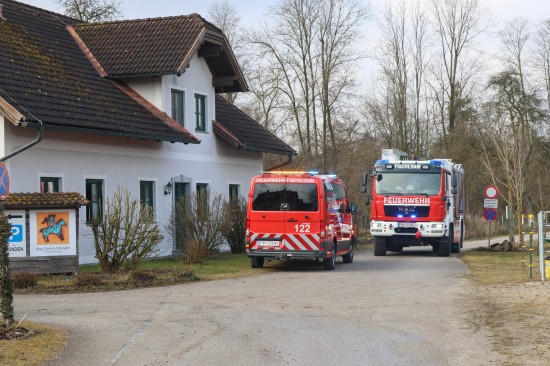 Brandeinsatz in einem Gebäude mit Tierarztpraxis in Fischlham nach Stromausfall in der Umgebung