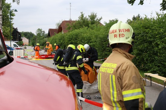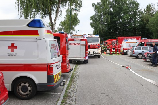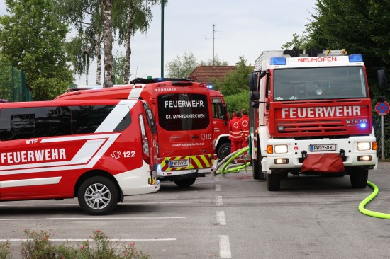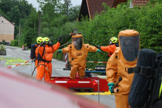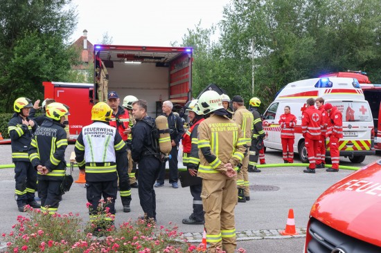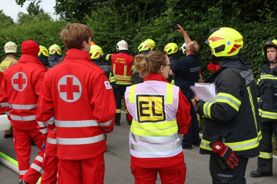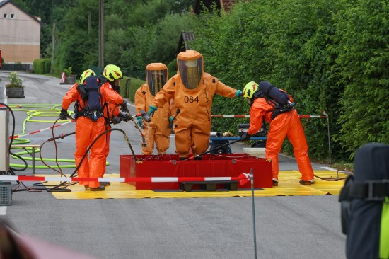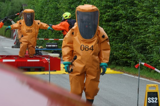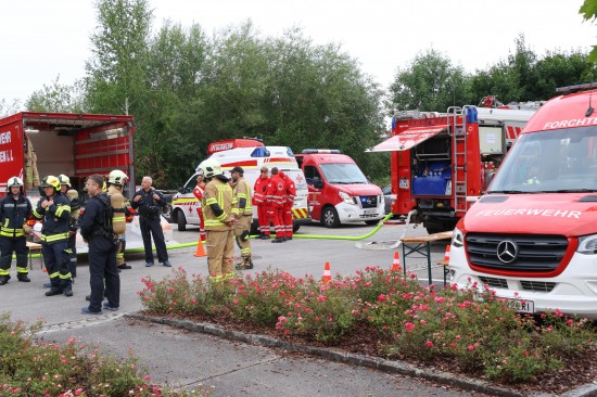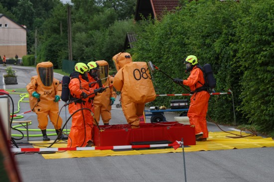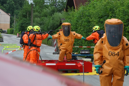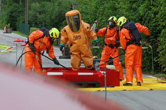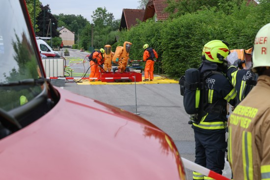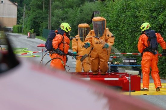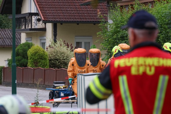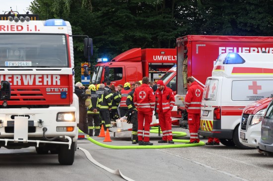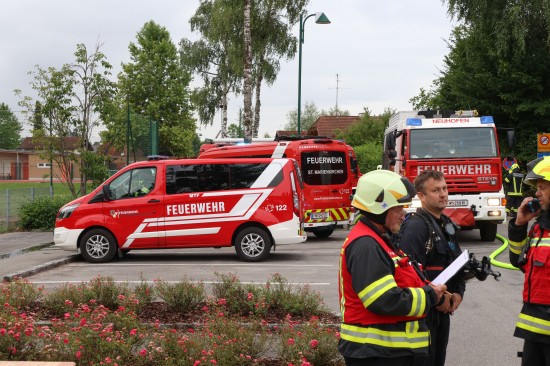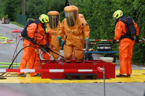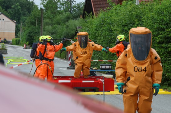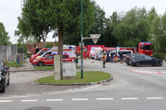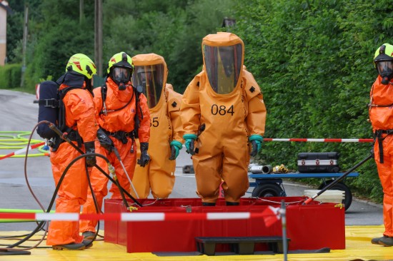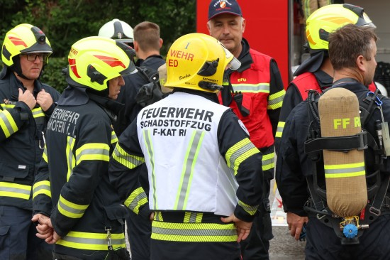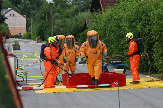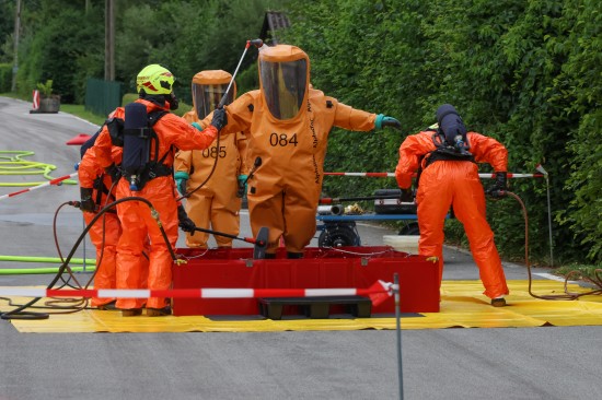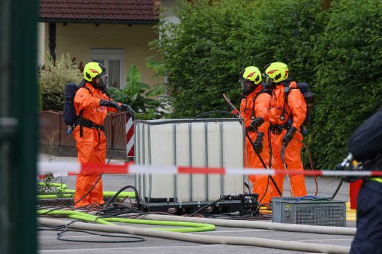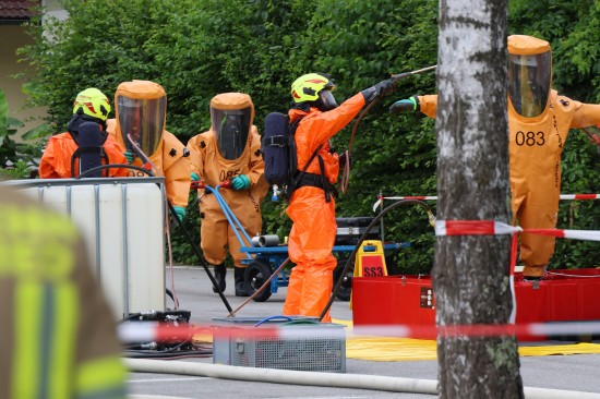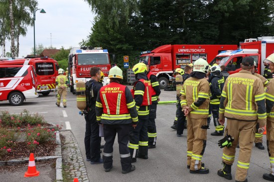 Sechs Feuerwehren standen - teils als sogenannter Feuerlösch- und Katastrophenschutzzug - beim örtlichen Freibad in St. Martin im Innkreis im Einsatz, nachdem es dort zu einem größeren Chlorgasaustritt gekommen sein dürfte. Die Feuerwehr bestätigte den Austritt von Chlor. Die Einsatzkräfte waren unter anderem mit sogenannten Vollschutzanzügen der Schutzstufe 3 im Einsatz. Die Flaschen konnten geschlossen werden, woraufhin keine erhöhten Werte aus der Anlage mehr zu registrieren waren. Für Anrainerinnen und Anrainer galt eine großräumige Absperrung. Neben einem Großaufgebot der Feuerwehr standen auch Rettungsdienst und Polizei sowie Mitarbeiter der Gemeinde im Einsatz. Zum Einsatz - beratend für die Rettungskräfte - bereits am Beginn des Einsatzes kam auch ein CBRN-Fachberater des Roten Kreuzes (CBRN steht für chemische, biologische, radioaktive und nukleare Substanzen), welcher die eingesetzten Rettungskräfte über die Eigenschaften beziehungsweise zu beachtende Gefahren am Einsatzort aufklärt.