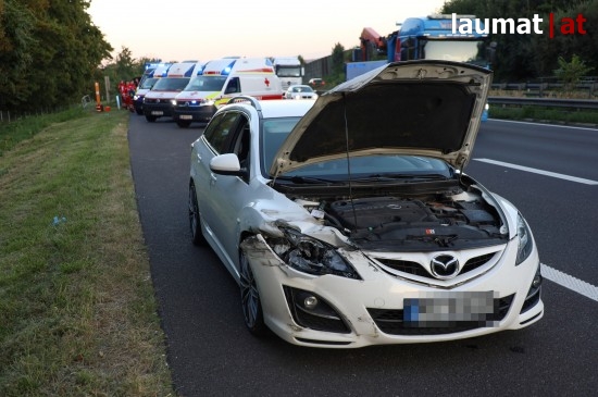 Auf der A8 Innkreisautobahn bei Wels-Oberthan hat sich am Mittwochabend eine Kollision zwischen zwei Autos ereignet. Den Einsatzkräften wurde dann eine Massenkarambolage mit zehn beiteiligten Fahrzeugen gemeldet, woraufhin ein Großaufgebot der Rettungskräfte sowie die Feuerwehr in Gang gesetzt wurden. Vor Ort konnte dann festgestellt werden, dass zum Glück nur zwei Fahrzeuge beteiligt waren und der Crash vergleichsweise glimpflich endete. Zwei Personen wurden bei dem Unfall leicht verletzt. Eine Autolenkerin sowie ihr mitgeführter Hund überstanden den Unfall unverletzt. Die Feuerwehr konnte umgehend wieder abrücken, die Traffic Manager der ASFINAG und der Abschleppdienst führten die Aufräumarbeiten durch.