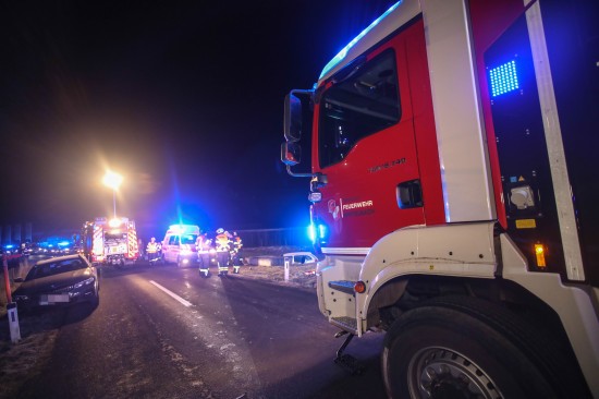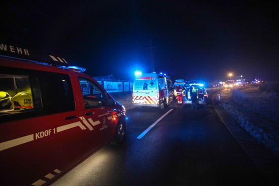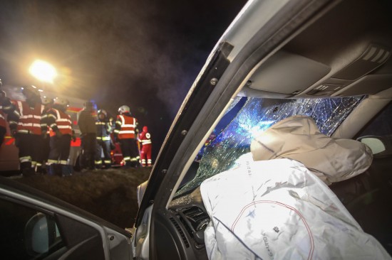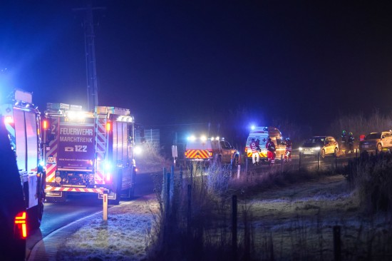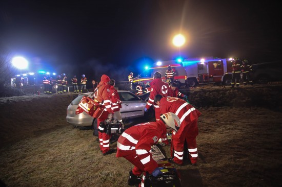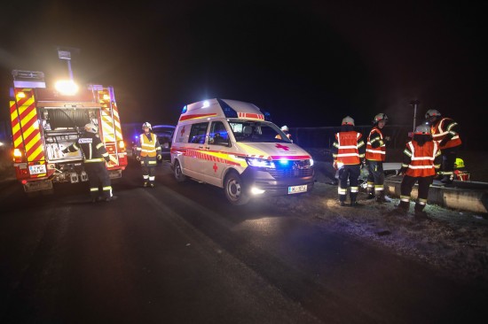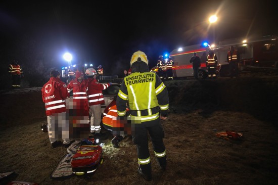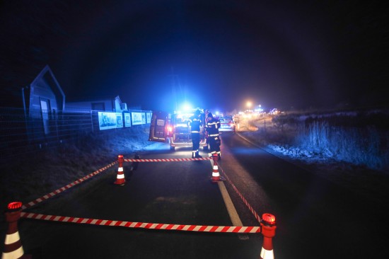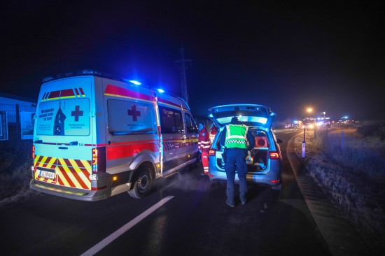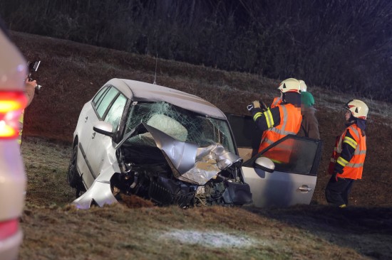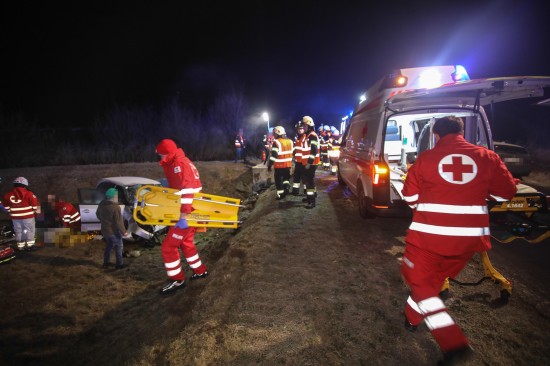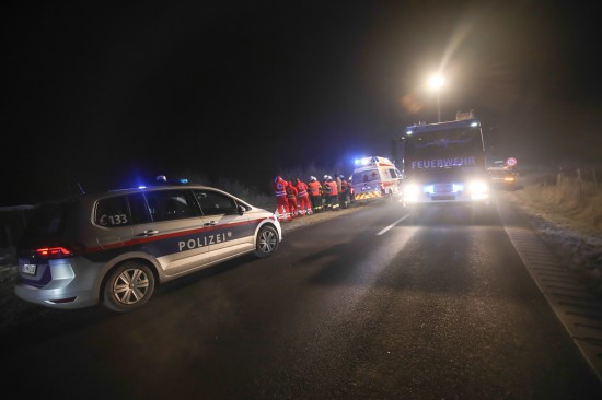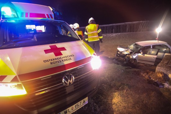 "Ein 31-Jähriger aus dem Bezirk Wels-Land war mit seinem PKW am 27. November 2025 gegen 22:25 Uhr auf der L1228 Mistelbacher Straße gemeinsam mit einem 31-Jährigen aus dem Bezirk Wels-Land unterwegs. Bei Straßenkilometer 7,4 im Gemeindegebiet von Holzhausen verlor der Mann die Kontrolle über sein Fahrzeug, kam von der Fahrbahn ab und stürzte in ein Regenrückhaltebecken. Die beiden Männer wurden schwer verletzt und nach der Erstversorgung in das Klinikum Wels beziehungsweise Unfallkrankenhaus Linz eingeliefert. Ein bei dem Lenker durchgeführter Alkotest ergab einen Wert von 1,42 Promille. Die L1228 Mistelbacher Straße war im Bereich der Unfallstelle für etwa eineinhalb Stunden gesperrt."
