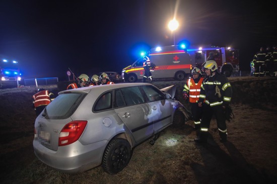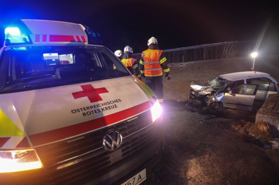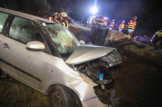 Holzhausen. In Holzhausen (Bezirk Wels-Land) hat sich am späten Donnerstagabend ein schwerer Verkehrsunfall ereignet. Ein Auto verunfallte und landete dabei in einem Regenrückhaltebecken.