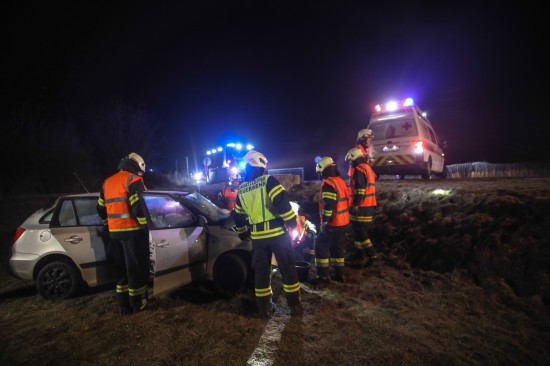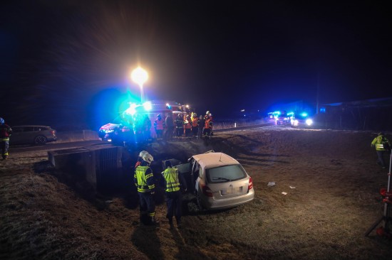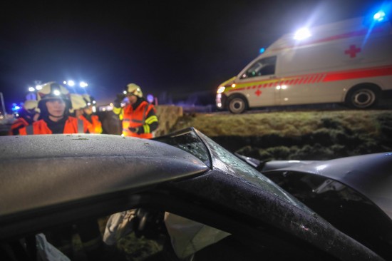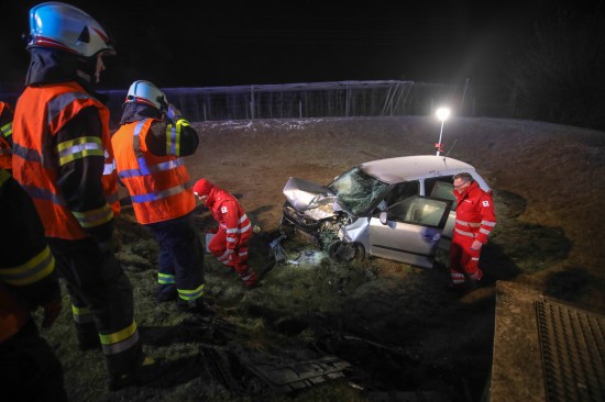 In Holzhausen (Bezirk Wels-Land) hat sich am späten Donnerstagabend ein schwerer Verkehrsunfall ereignet. Ein Auto verunfallte und landete dabei in einem Regenrückhaltebecken.