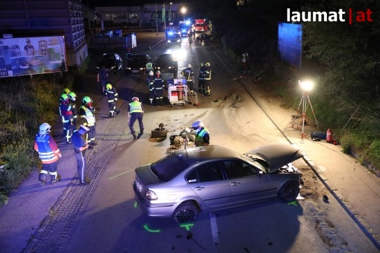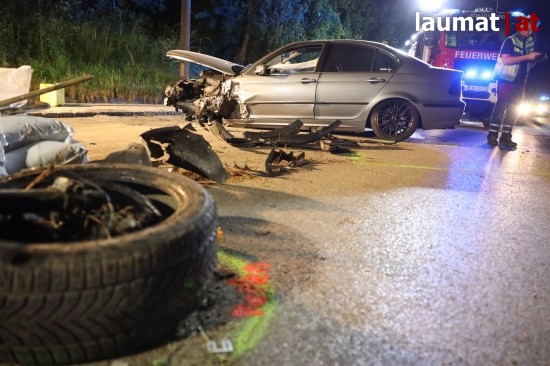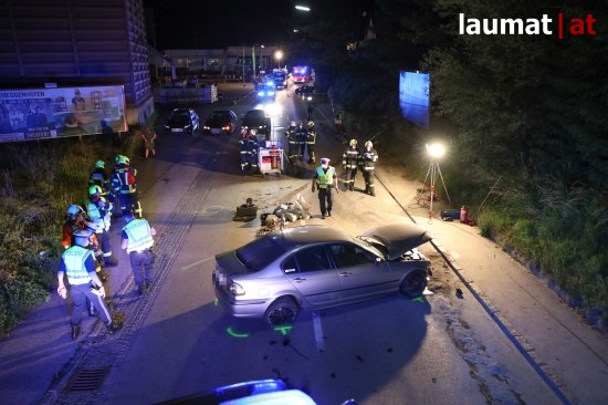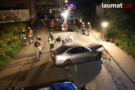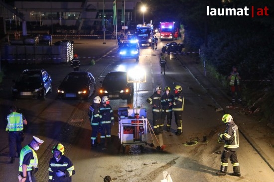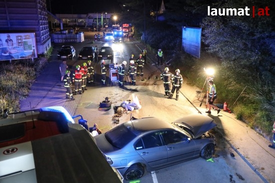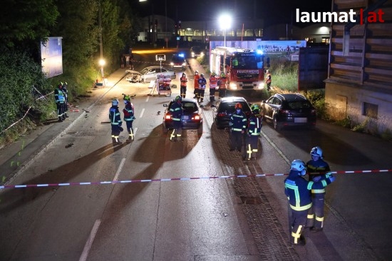 Eine vermutlich viel zu rasante Fahrt hat am späten Donnerstagabend in Grieskirchen in einem schweren Unfall mit drei teils Schwerverletzten geendet.