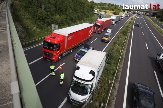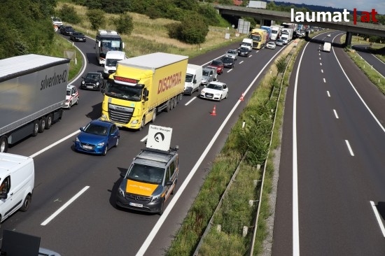 Crash vor Baustellenbereich auf A25 Welser Autobahn bei Marchtrenk führte zu kilometerlangem Stau
