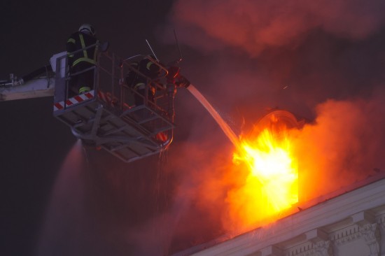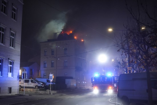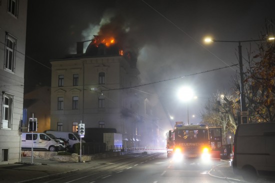 Kurz nach 03:00 Uhr wurden die Einsatzkräfte der Feuerwehr zu einem Brand im Dachbereich eines Wohngebäudes im Zentrum von Gmunden alarmiert. Binnen kurzer Zeit breitete sich das Feuer auf den gesamten Dachbereich des historischen und ersten Angaben zufolge erst relativ kürzlich sanierten Gebäudes aus. Die Feuerwehr forderte nach und nach weitere Kräfte an, sodass in Summe Einsatzkräfte von acht Feuerwehren mit drei Drehleitern beziehungsweise Hubrettungsgeräten im Einsatz standen, um die Flammen unter Kontrolle zu bringen. Immer wieder loderten Flammen aus dem verwinkelten Dachbereich. Die Wohnungsmieterinnen beziehungsweise Wohnungsmieter konnten sich ersten Angaben nach allesamt unverletzt in Sicherheit bringen. Das Rote Kreuz war dennoch vor Ort, ebenso mehrere Streifen der Polizei.