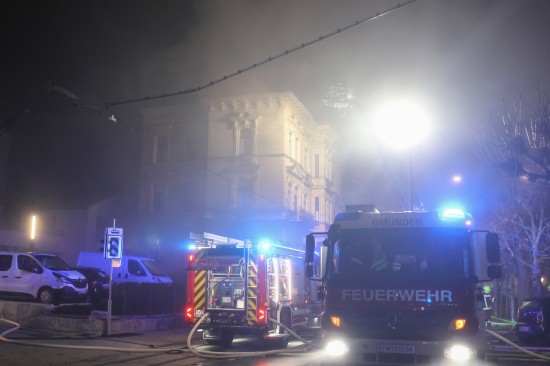 Gmunden. In Gmunden ist es in der Nacht auf Donnerstag zu einem Großeinsatz der Feuerwehren gekommen, nachdem ein Dachstuhl eines historischen Mehrparteienwohngebäudes in Vollbrand stand.