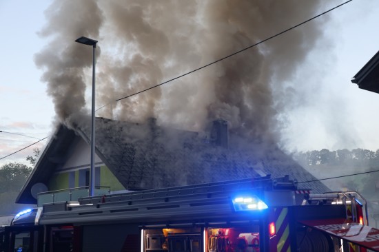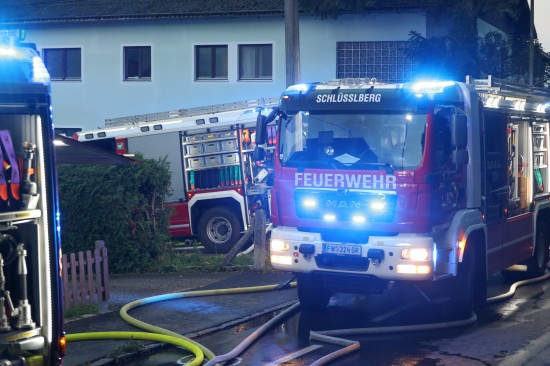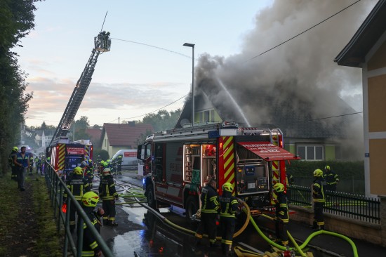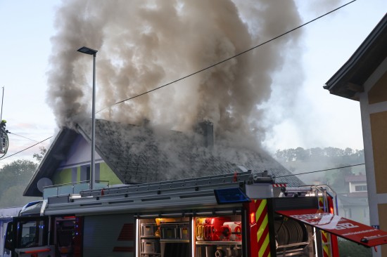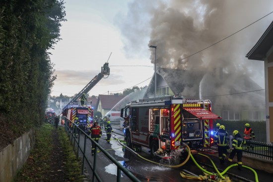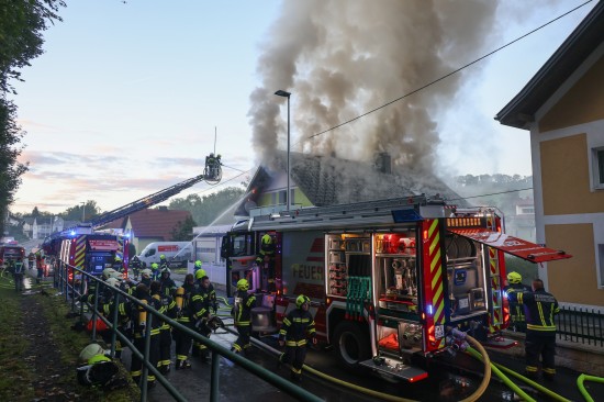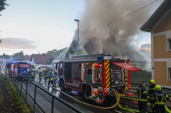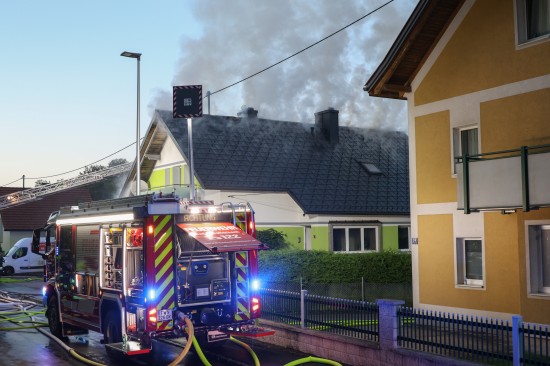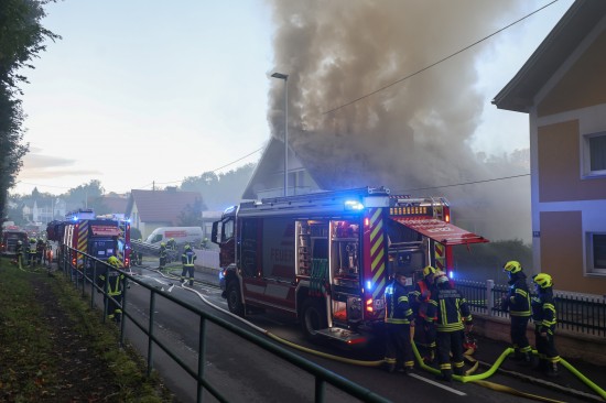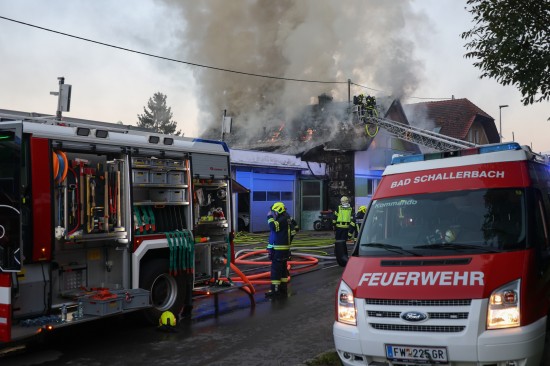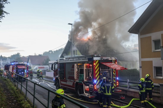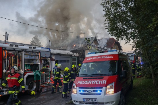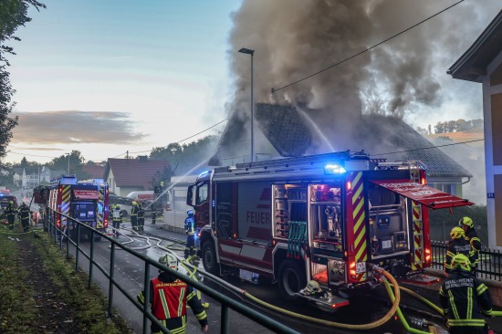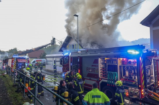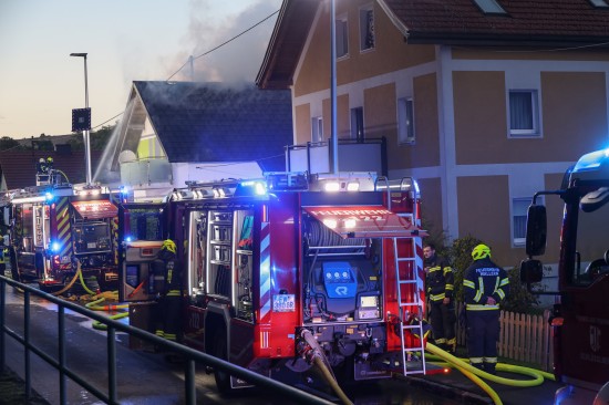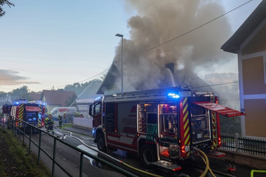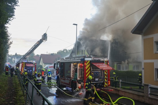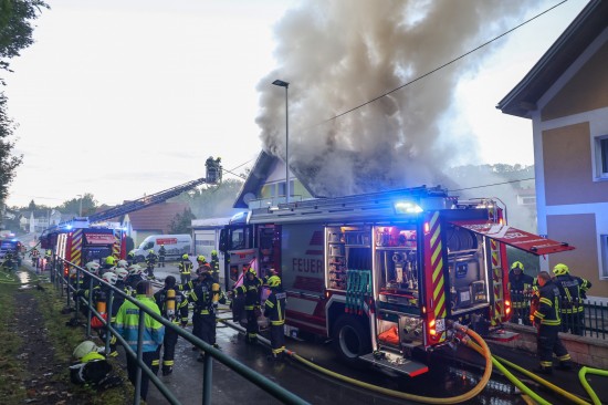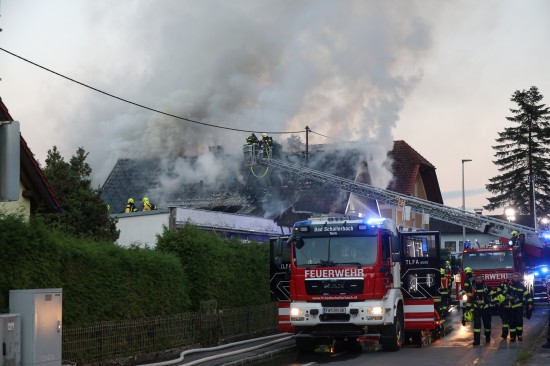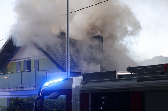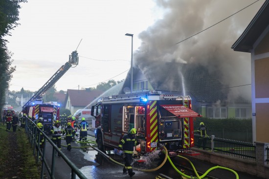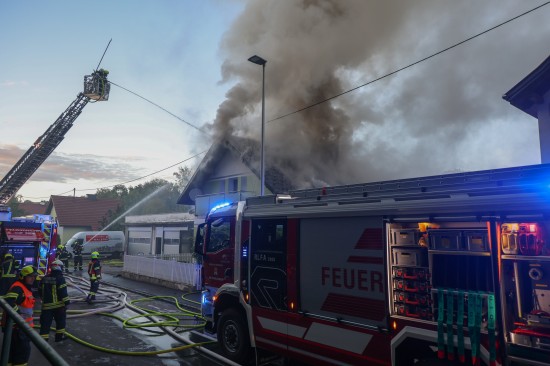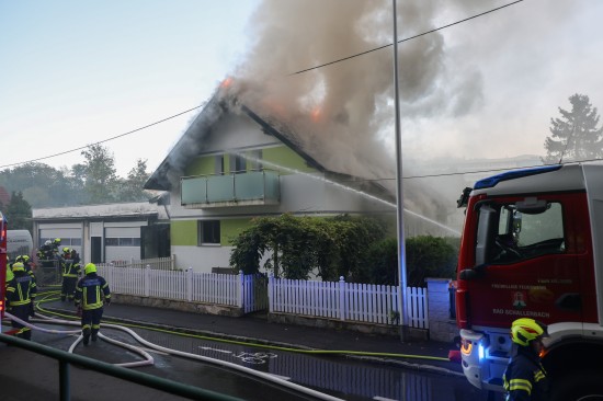 Dachstuhl in Vollbrand: Sieben Feuerwehren bei Brand eines Wohnhauses in Bad Schallerbach im Einsatz