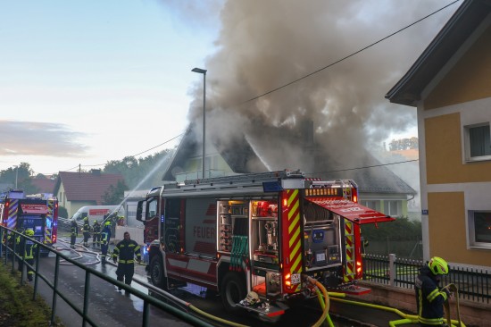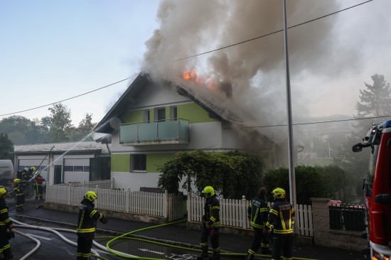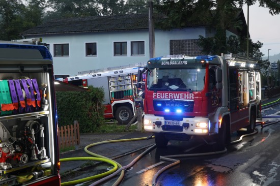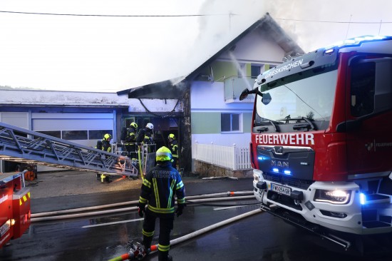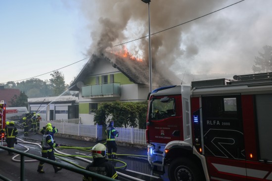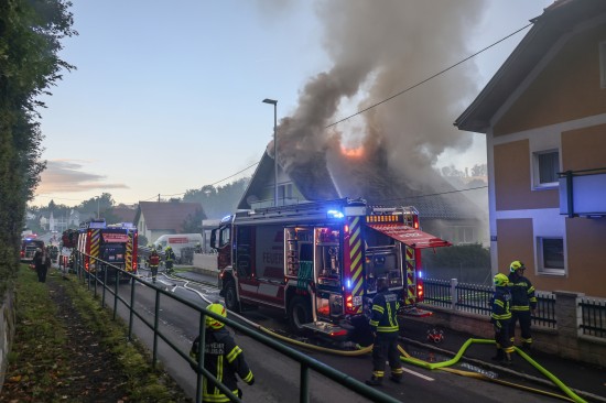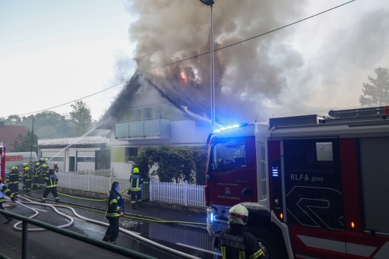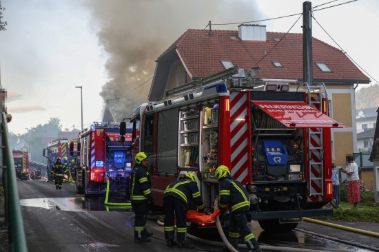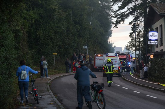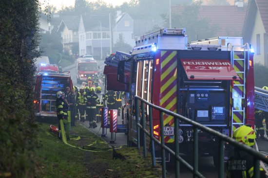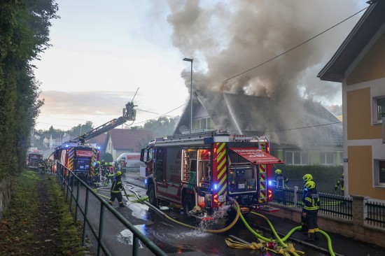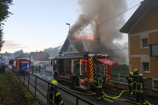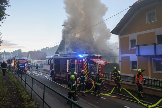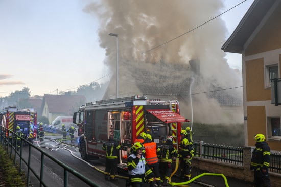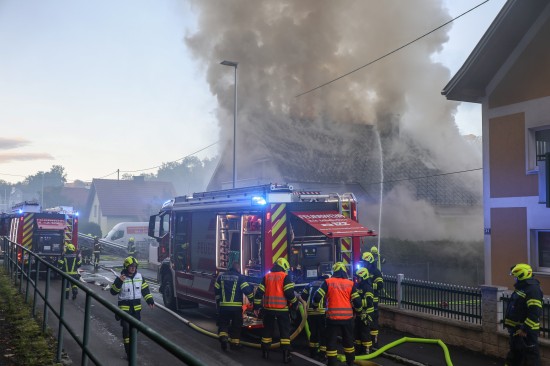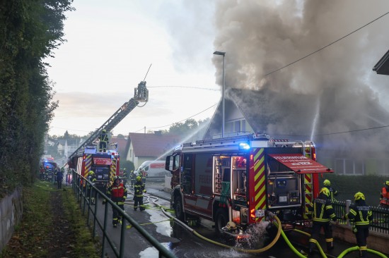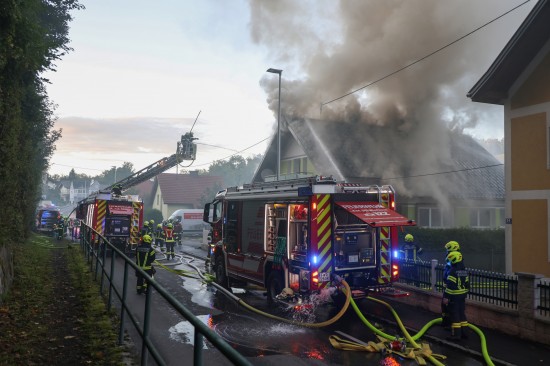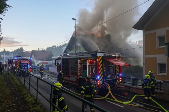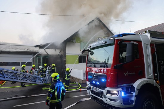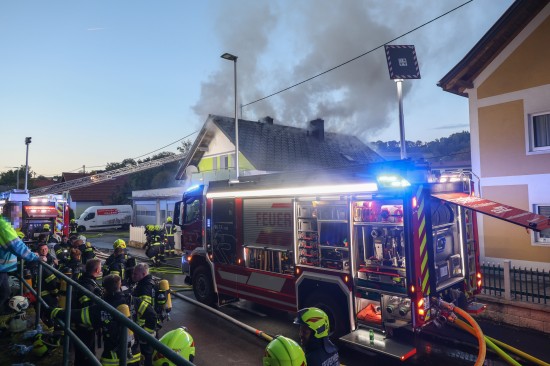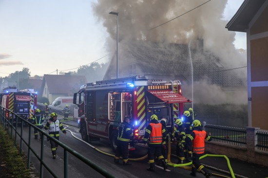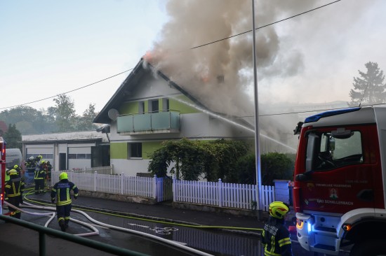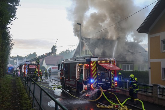 Dachstuhl in Vollbrand: Sieben Feuerwehren bei Brand eines Wohnhauses in Bad Schallerbach im Einsatz
