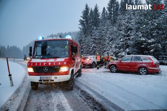 Freitagnachmittag standen die Einsatzkräfte bei einem Verkehrsunfall zwischen Bad Leonfelden und Reichenau im Mühlkreis (Bezirk Urfahr-Umgebung) im Einsatz. In einer Kurve kollidierten drei PKW.