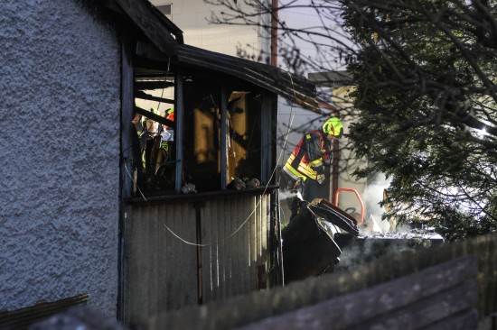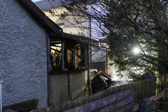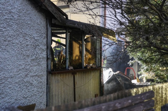 Drei Feuerwehren bei Brand eines Nebengebäudes bei einem Wohnhaus in Traun im Einsatz