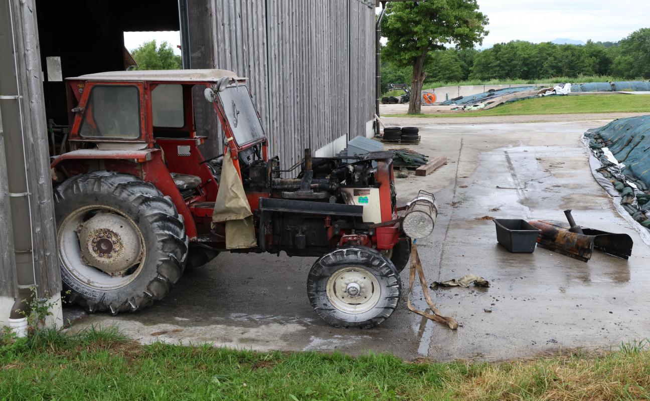 Drei Feuerwehren standen am späten Samstagnachmittag bei einem Brand eines Traktors auf einem Bauernhof in Weibern (Bezirk Grieskirchen) im Einsatz.
