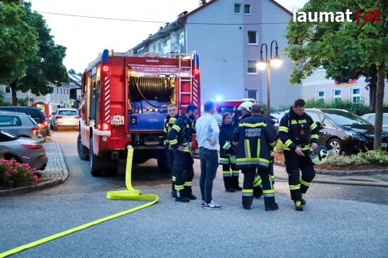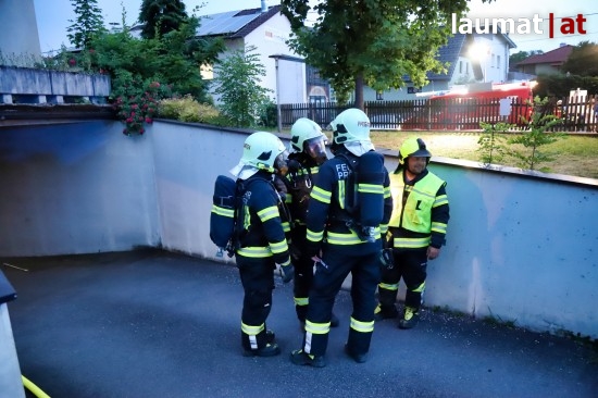 Drei Feuerwehren bei Kellerbrand in einem Mehrparteienwohnhaus in Pregarten im Einsatz