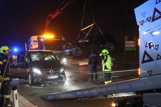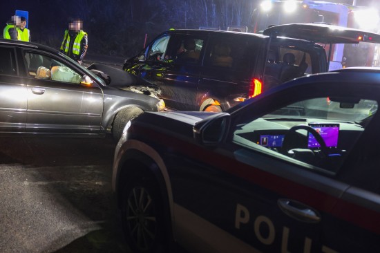 Im Kreuzungsbereich der Auffahrt zur beziehungsweise Abfahrt von der A8 Innkreisautobahn mit der B134 Wallerner Straße, im Gemeindegebiet von Pichl bei Wels, kollidierten am späteren Mittwochabend zwei PKW. Drei Personen wurden bei dem Unfall leicht verletzt. Die Verletzten wurden vom Rettungsdienst versorgt. Die Feuerwehr wurde zu den Aufräumarbeiten alarmiert. Die Unfallstelle im dichten Nebel wurde abgesichert, der Verkehr so gut es ging an der Unfallstelle vorbeigeleitet. Die Unfallfahrzeuge wurden in weiterer Folge von den verständigten Abschleppdiensten geborgen und abtransportiert.
