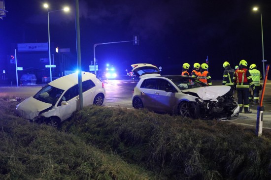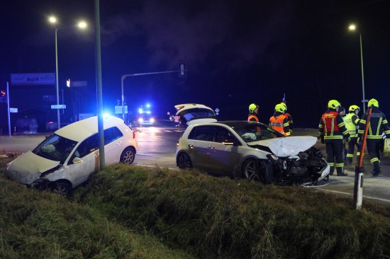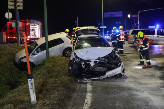 Drei Verletzte forderte Samstagabend ein heftiger Kreuzungscrash zwischen zwei PKW auf der B138 Pyhrnpass Straße in Thalheim bei Wels (Bezirk Wels-Land). Wenig später krachte es dann nochmal.