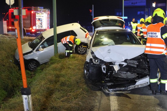 Thalheim bei Wels. Drei Verletzte forderte Samstagabend ein heftiger Kreuzungscrash zwischen zwei PKW auf der B138 Pyhrnpass Straße in Thalheim bei Wels (Bezirk Wels-Land). Wenig später krachte es dann nochmal.