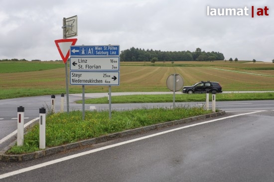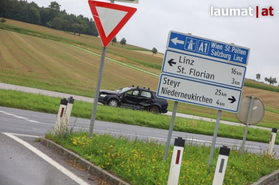 Der Unfall passierte im Kreuzungsbereich der L564 Wolferner Straße, Enzing mit der L1374 St. Marien Straße und Niederfraunleiten im Gemeindegebiet von St. Florian, wo aus noch unklarem Grund zwei PKW kollidierten. Feuerwehr, Rettungsdienst, Notarzt und die Polizei standen im Einsatz. Entgegen erster Informationen soll niemand eingeklemmt gewesen sein. Die Feuerwehren führten Aufräumarbeiten durch.
