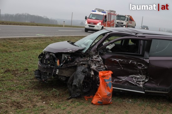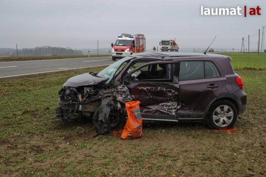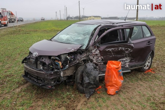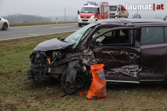 Drei Verletzte bei schwerem Verkehrsunfall zwischen zwei PKW in Peuerbach