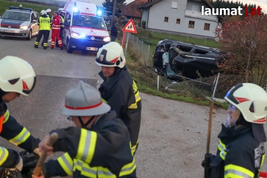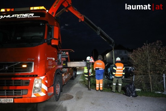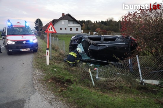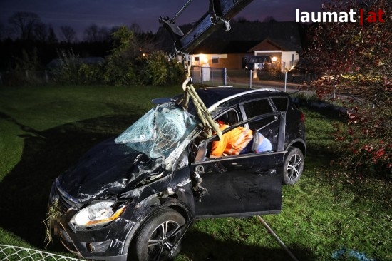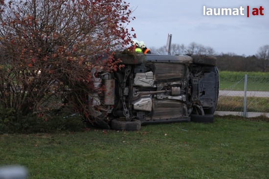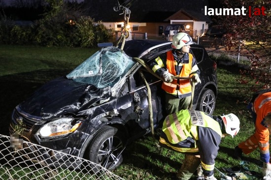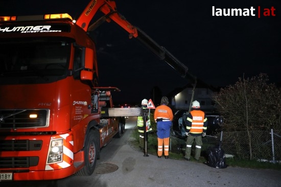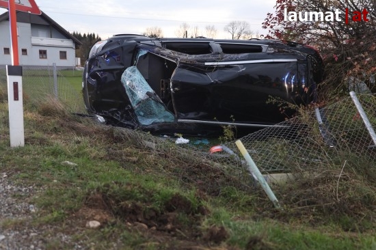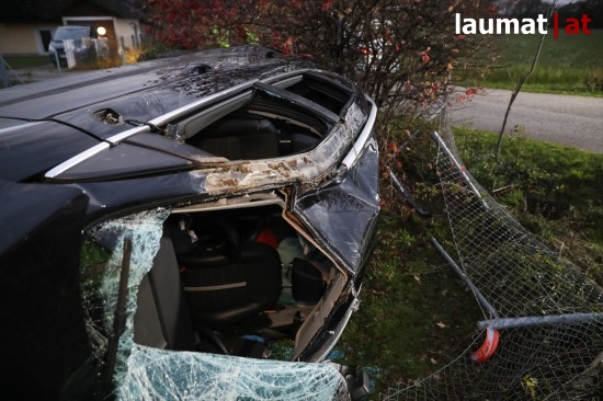 Das Auto überschlug sich auf ein angrenzendes Grundstück und kam seitlich liegend im Bereich des Gartenzaunes zum Stillstand. Die PKW-Lenkerin sowie ihre 16-jährige Tochter und deren 18-jährige Freundin konnten sich selbstständig aus dem Auto befreien. Sie wurden nach der Erstversorgung durch den Rettungsdienst ins Klinikum Wels eingeliefert. Der alarmierte Notarzthubschrauber Christophorus 10 wurde zum Glück nicht benötigt, er konnte wieder zum Stützpunkt zurückfliegen. Die Feuerwehr sicherte die Unfallstelle ab und unterstützte das Abschleppunternehmen bei der Fahrzeugbergung. Für die Grundstücksbesitzer war das bereits das dritte Fahrzeug, welches nach einem Unfall in ihrem Garten zum Stillstand kam.