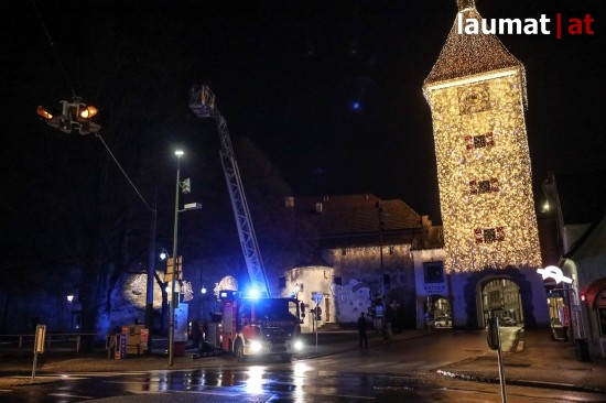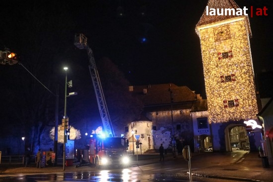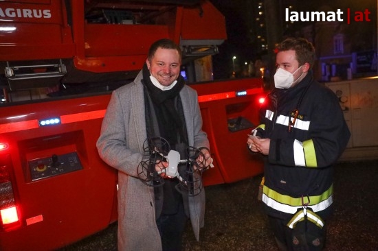 Bei Aufnahmen der weihnachtlich geschmückten Welser Innenstadt landete eine Drohne in einer Baumkrone. Die Feuerwehr rückte mit der Drehleiter an und konnte das Fluggerät rasch vom Baum bergen. Die Einsatzkräfte der Feuerwehr konnten die Drohne nach Abschluss der Bergeaktion dem Piloten - Christoph Brückl, Welser Medienunternehmer und Herausgeber "Die Monatliche" - wieder übergeben.