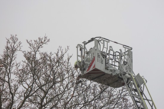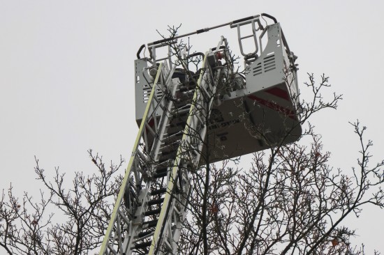 Drohnenbergung: Fluggerät mit Drehleiter der Feuerwehr von Baum in Wels-Innenstadt geholt