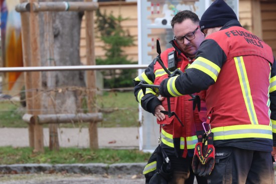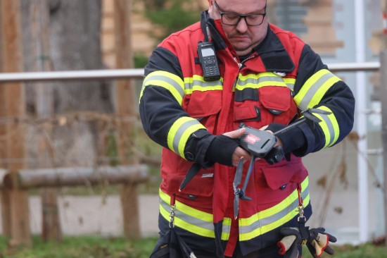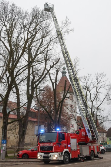 Die Feuerwehr stand Samstagvormittag bei der Bergung einer Drohne aus einer Baumkrone im Pollheimerpark im Einsatz. Offenbar bei Aufnahmen des Weihnachtsmarkts im Pollheimerpark landete am Vorabend eine Drohne im Baum. Es wurde dann entschieden die Drohne bei Tageslicht am Samstagvormittag zu bergen. Mittels Drehleiter konnte das Fluggerät dann von einer Feuerwehrfrau erreicht und so vom Baum gebracht werden.