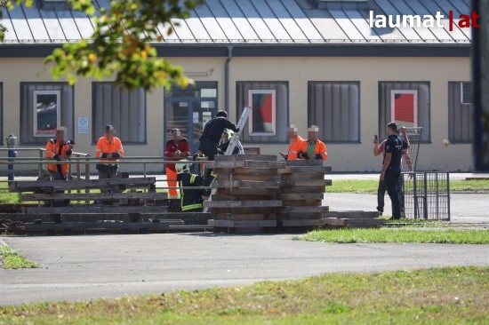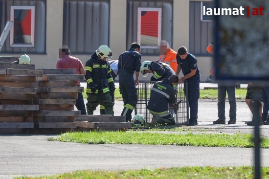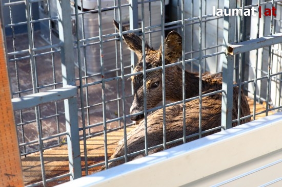 Einsatzkräfte der Feuerwehr standen Montagmittag bei einer Tierrettung auf einem Bahnbetriebsgelände in Wels-Neustadt im Einsatz. Ein junges Reh wurde aus einem Regenwasserbecken gerettet.