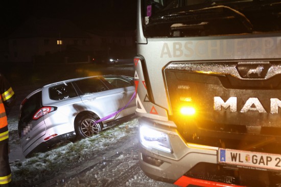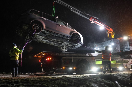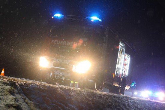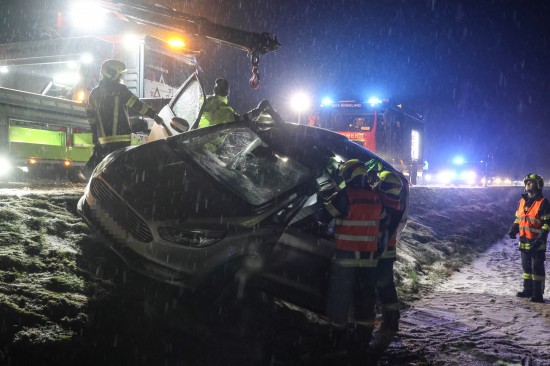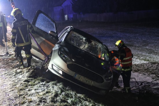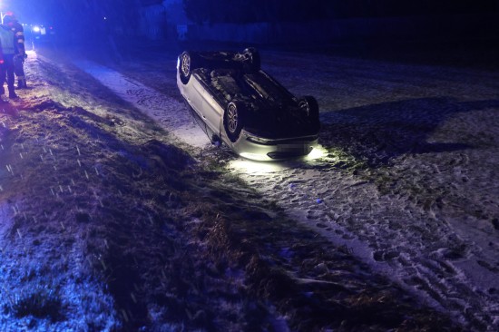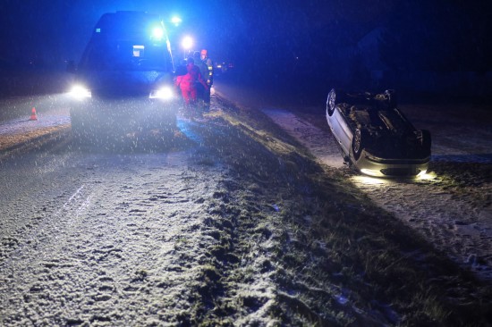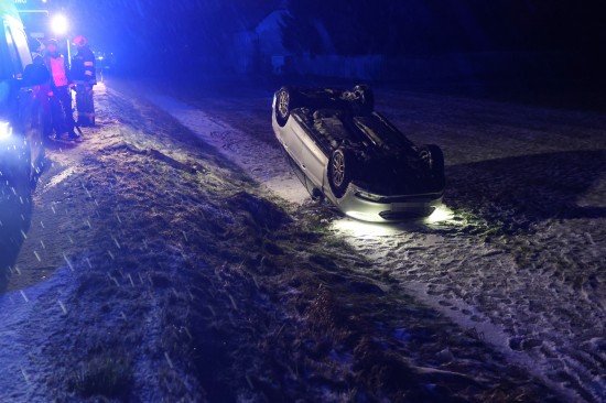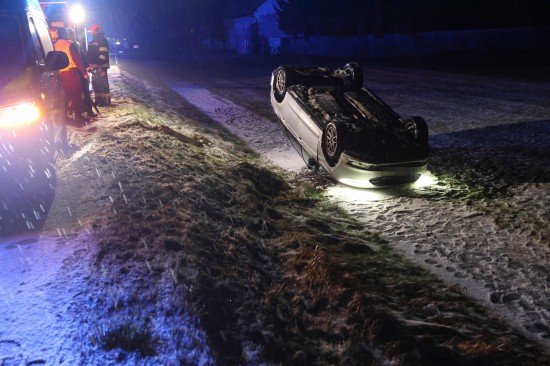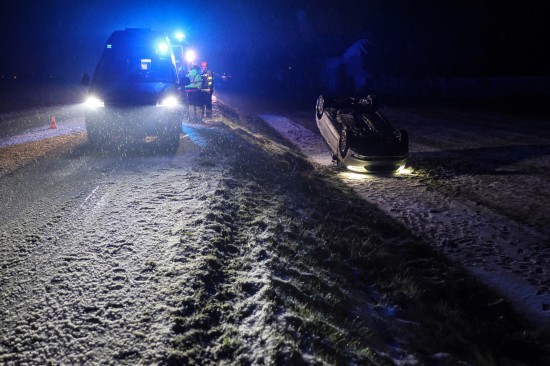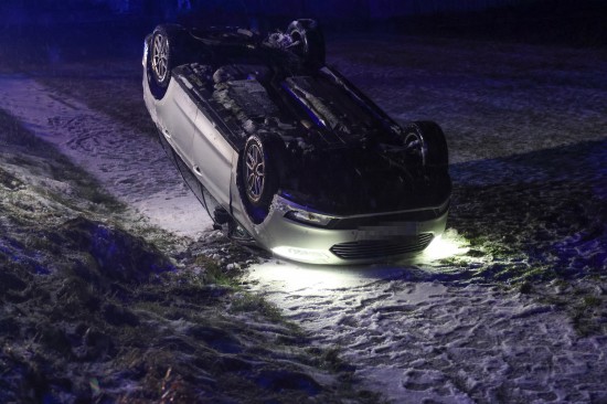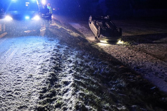 Edt bei Lambach: Auto bei winterlichen Fahrbedingungen von Wiener Straße abgekommen und überschlagen