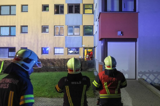 Ein Verletzter bei nächtlichem Kleinbrand in einem Mehrparteienwohnhaus in Wels-Pernau