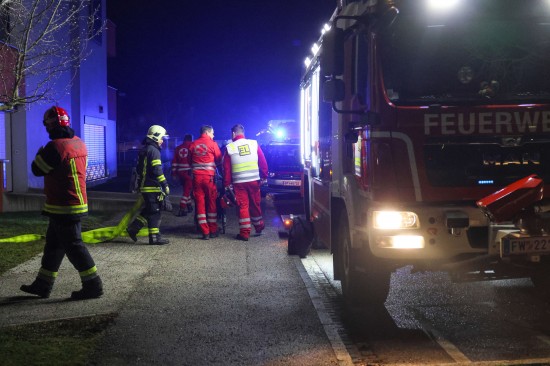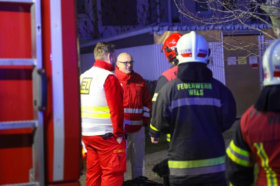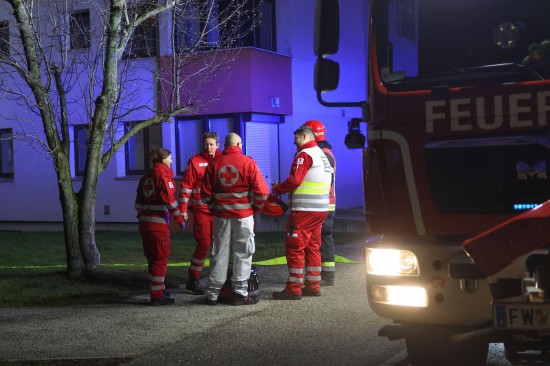 Die Einsatzkräfte von Feuerwehr, Rettung, Notarzt und Polizei standen in der Nacht auf Sonntag bei einem Kleinbrand in einem Mehrparteienwohnhaus in Wels-Pernau im Einsatz.