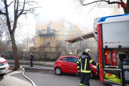 Einsatz bei Kellerbrand in einem Wohnhaus in Wels-Innenstadt