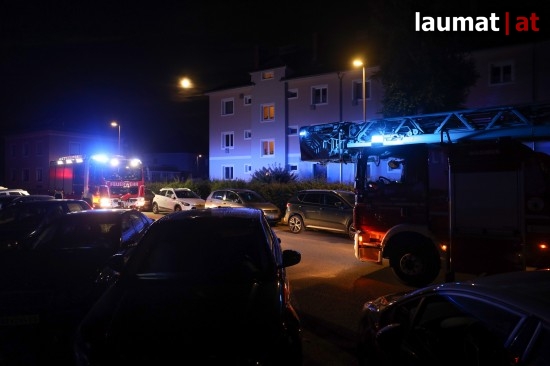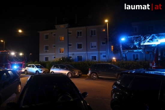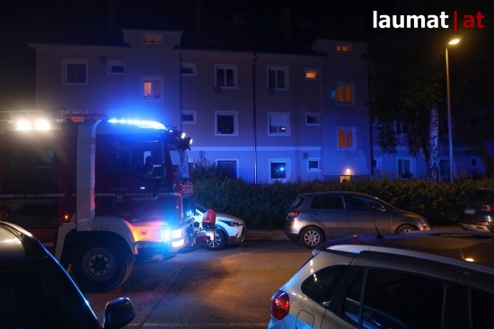 Feuerwehr und Polizei standen in der Nacht auf Mittwoch in einem Mehrparteienwohnhaus in Wels-Vogelweide bei einer Kontrolle nach einem gemeldeten Gasgeruch im Einsatz.