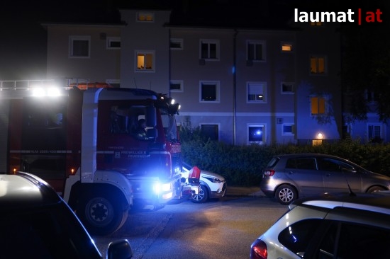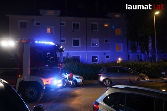 Einsatz der Feuerwehr nach gemeldetem Gasgeruch in einem Mehrparteienwohnhaus in Wels-Vogelweide