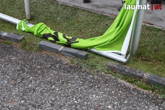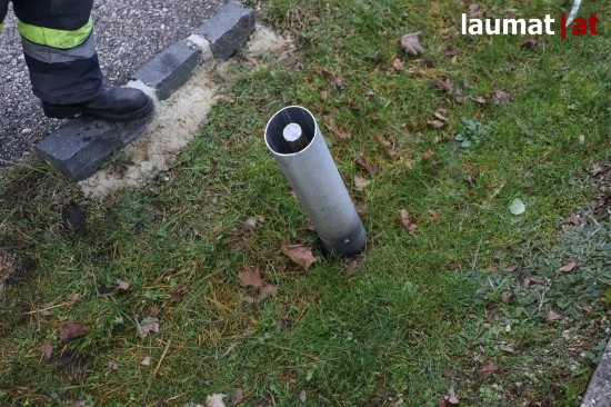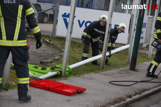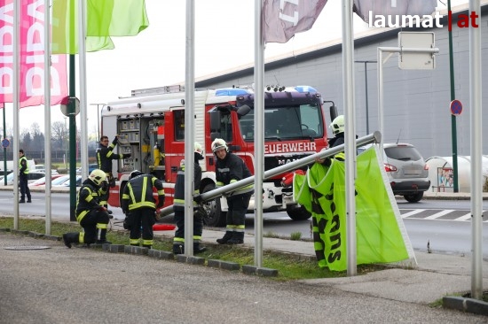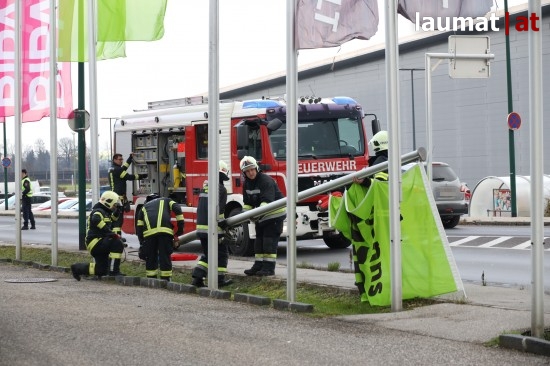 Einsatz in Wels-Waidhausen: Fahnenmast nach Unfall in Schieflage