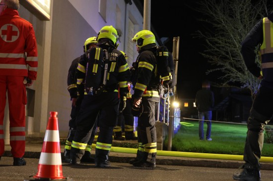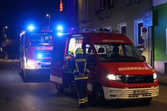 Die Einsatzkräfte zweier Feuerwehren wurden zu einem Gebäudebrand ins Ortszentrum von Neuhofen an der Krems alarmiert, nachdem es dort offenbar zu einer Rauchentwicklung gekommen ist. Die Bewohnerinnen und Bewohner befanden sich vor dem Gebäude, während die Kräfte der Feuerwehr sich auf die Suche nach einem Brand machten. Eine Ursache für die Verrauchung konnte aber auch nach langer Zeit nicht ausgemacht werden. Verrauchung trat ebenfalls keine mehr auf. Sowohl der Wohnbereich, als auch Keller, Dachboden und der Bereich des Gastrolokals wurden durchsucht.