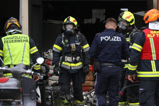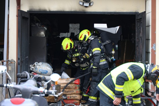 Traun. Ein Garagenbrand beschäftigte die Einsatzkräfte der Feuerwehr am Sonntagvormittag in Traun (Bezirk Linz-Land).