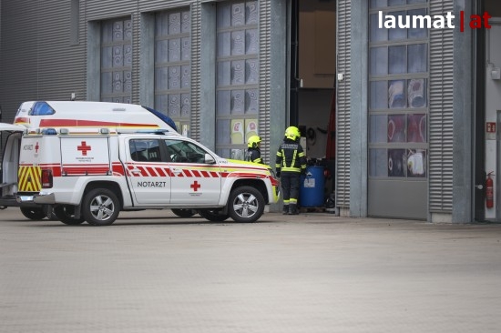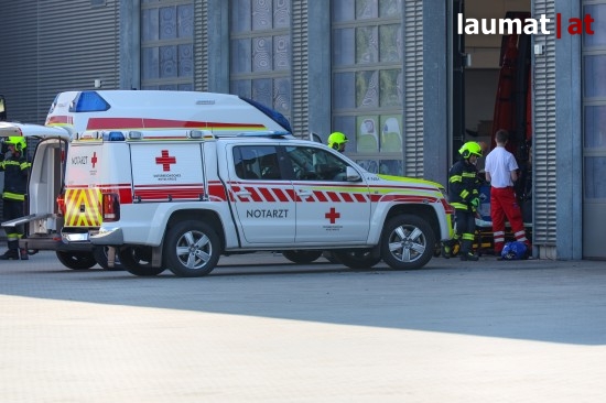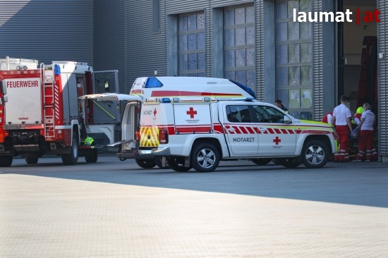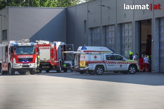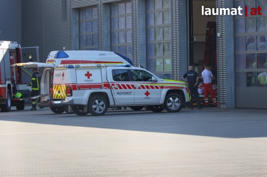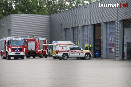Einsatzkräfte bei Personenrettung in einer LKW-Werkstätte in Weißkirchen an der Traun im Einsatz