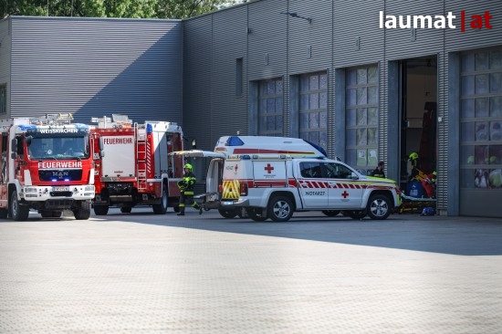 In Weißkirchen an der Traun (Bezirk Wels-Land) standen die Einsatzkräfte Montagnachmittag bei einer Personenrettung in einer LKW-Werkstätte im Einsatz.