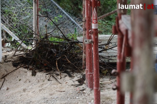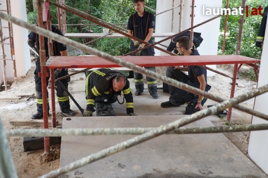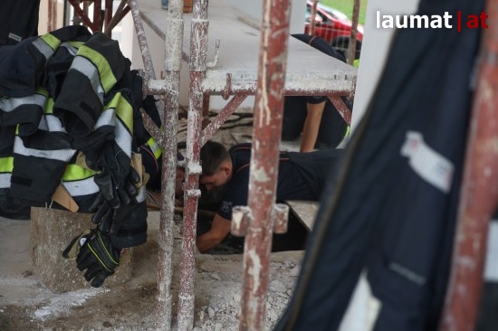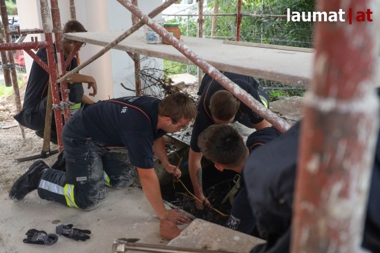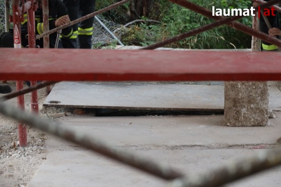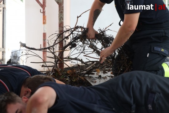 Einsatzkräfte beseitigen schwer zugängliche Verklausung des Gießerbachs in Wels-Lichtenegg