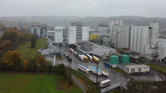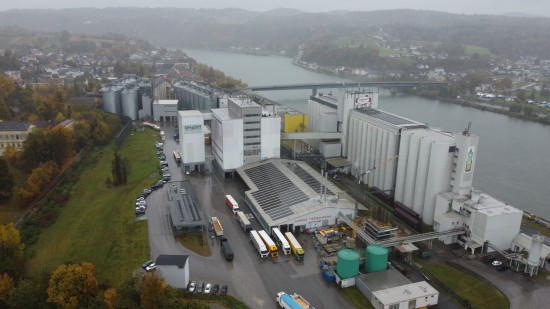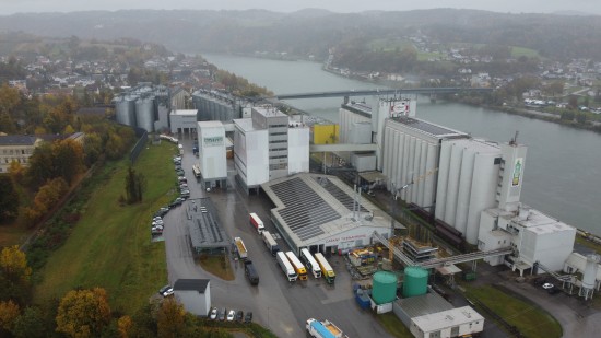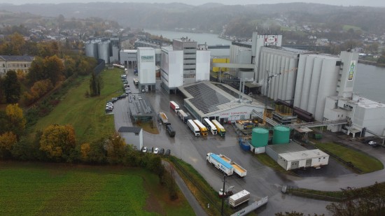 Einsatzkräfte der Feuerwehr bei Brand in einem Unternehmen in Aschach an der Donau im Einsatz