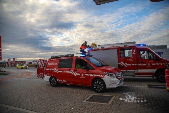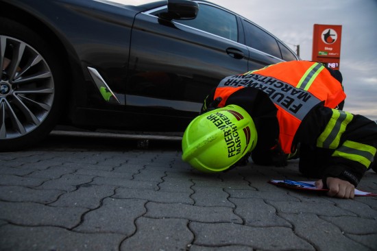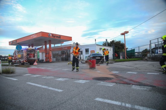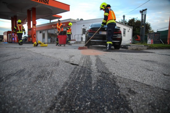 Einsatzkräfte nach Dieselaustritt aus einem PKW in Marchtrenk im Einsatz