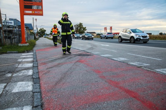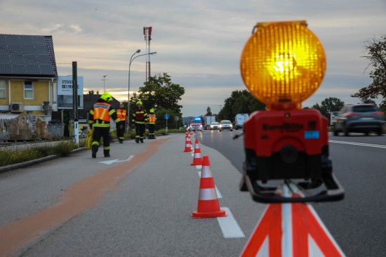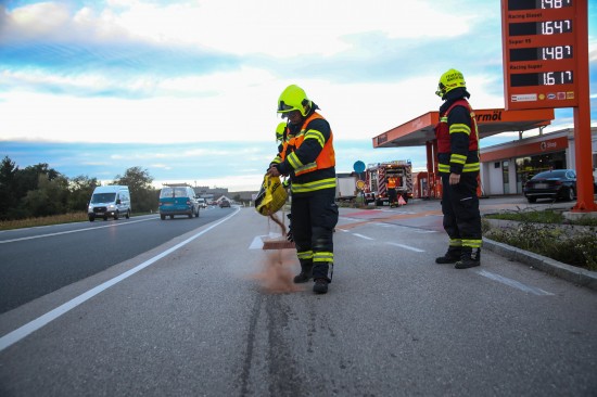 Nach einem technischen Gebrechen an einem PKW musste die Feuerwehr auf der B1 Wiener Straße, Welser Straße, sowie auf einer angrenzenden Tankstelle Bindemaßnahmen durchführen. Die Einsatzkräfte banden die teils intensive Dieselspur mittels Bindemittel. Auch die Austrittsstelle am Fahrzeug wurde lokalisiert und ein Auffangbehälter untergestellt.