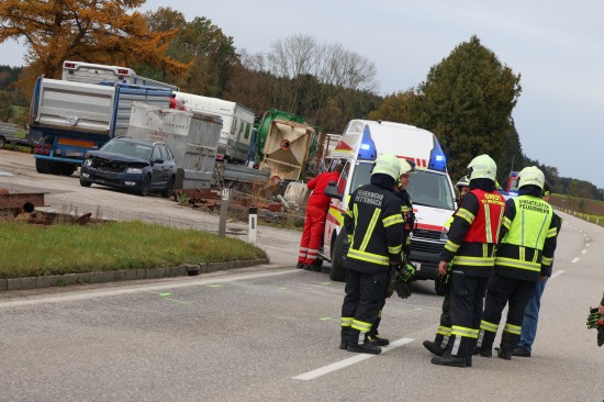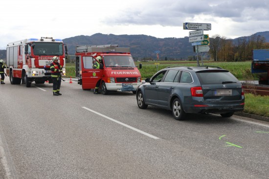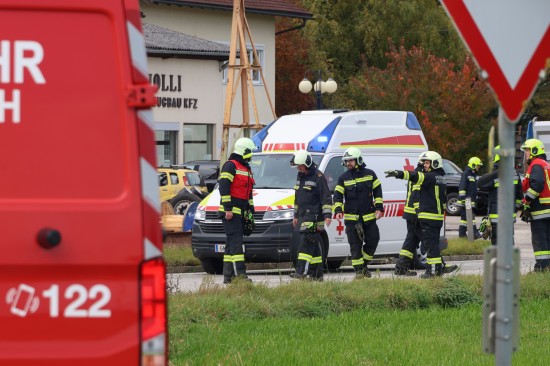 Einsatzkräfte zu Personenrettung nach Auffahrunfall vor Kreuzungsbereich in Pettenbach alarmiert