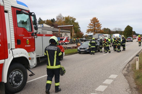 Der Unfall passierte am späten Dienstagvormittag auf der L536 Pettenbacher Straße, Vorchdorfer Straße bei der Kreuzung mit Pfaffing und der Wasserhubstraße, im Gemeindegebiet von Pettenbach. Aus noch unbekannten Gründen fuhr ein PKW auf einen anderen PKW auf. Die Einsatzkräfte zweier Feuerwehren wurden zur Personenrettung alarmiert, ebenso mehrere Rettungsfahrzeuge, der Notarzthubschrauber Martin 3 und die Polizei. Entgegen erster Meldungen war zum Glück aber niemand eingeklemmt oder in den Fahrzeugen eingeschlossen. Die Feuerwehr sicherte die Unfallstelle ab und führte in weiterer Folge die Aufräumarbeiten durch. Ein PKW wurde am angrenzenden Firmengelände abgestellt, das zweite Auto war soweit noch fahrbereit und konnte von der Unfallstelle gefahren werden. Vier Personen wurden bei dem Unfall verletzt.