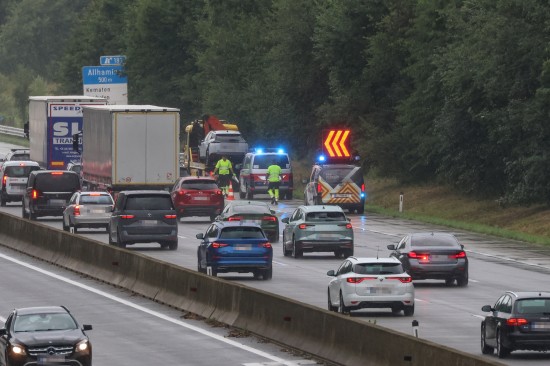 Die A1 Westautobahn war in Fahrtrichtung Wien, zwischen Sattledt und Allhaming für wenige Minuten gesperrt und rund eine halbe Stunde lang erschwert passierbar.