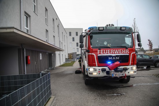 Einsatzkräfte zu vermeintlichem Kellerbrand in einer Wohnanlage in Wels-Vogelweide alarmiert