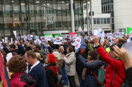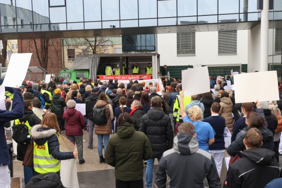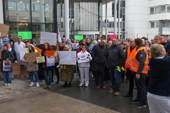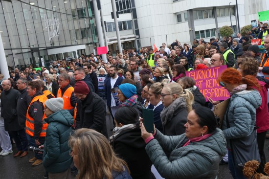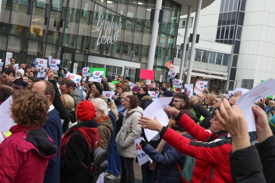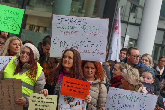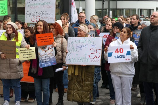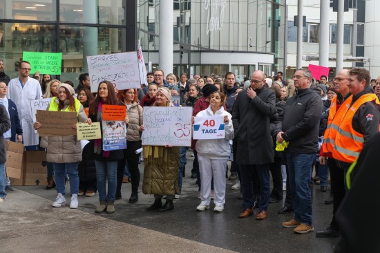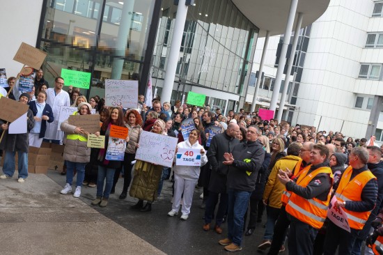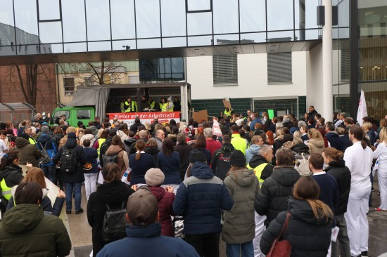 Derzeit laufen die Kollektivvertragsverhandlungen in der Sozialwirtschaft, verhandelt wird auch in den Ordenskrankenhäusern Oberösterreichs. Für Mittwoch wurde zu Betriebsversammlungen aufgerufen. Vor dem Klinikum Wels versammelten sich Mittwochmittag zahlreiche Mitarbeiterinnen und Mitarbeiter bei einer Betriebsversammlung. Im Rahmen dieser Versammlung wurde auch eine von 6.035 Personen unterzeichnete Absichtserklärung an die Geschäftsführung überreicht. Gefordert werden bessere Arbeitsbedingungen - wie eine Arbeitszeitverkürzung auf 35 Stunden - und eine Lohnerhöhung, die zumindest die hohe Inflation abfedert. "Burnout ist kein Berufsprofil" oder auch "Gesundheit beginnt bei guten Arbeitszeiten" war beispielsweise auf einem der Plakate zu lesen. Abschließend wurde ein 40 Tage-Ultimatum gestellt, sollte es zu keiner Einigung kommen, dann würden auch Warnstreiks folgen, heißt es.